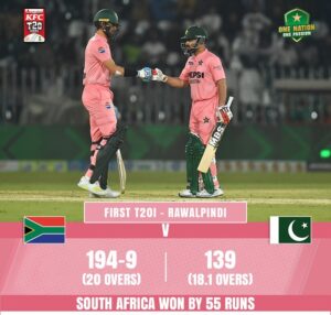 South Africa won by about 55 runs. Match Summary 🇵🇰 Pakistan – What Went Wrong 🇿🇦 South Africa – What