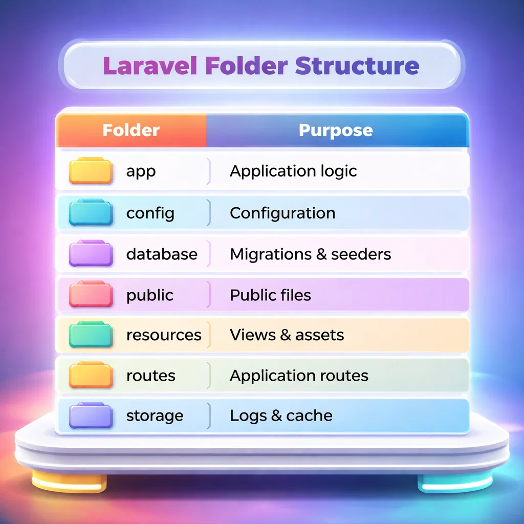 Understanding the Laravel folder structure is the first step to mastering Laravel. Once you know where things belong, development becomes faster, cleaner, and more professional.