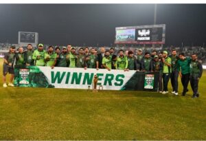 “Pakistan turning point Abrar Ahmed 4/27 Saim Ayub 77 Runs Series 2-1” Visuals: Use a large image of Pakistan players