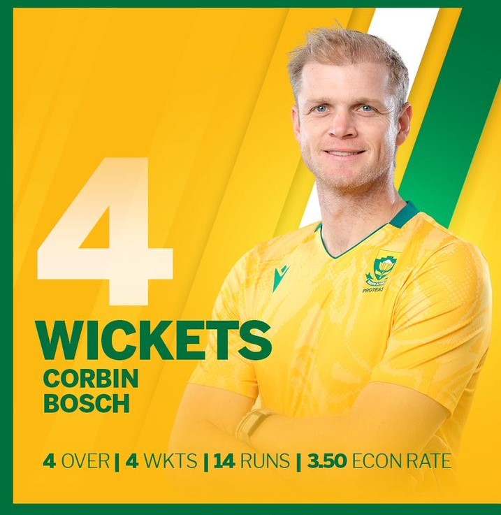 - Corbin Bosch (South Africa) picked up key wickets (including one of Pakistan’s big names) and had a strong impact.