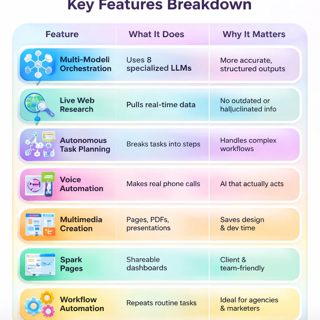 This approach—called a “mixture of agents”—allows Genspark to break large tasks into smaller steps, execute them intelligently, and deliver far more accurate and useful outputs.